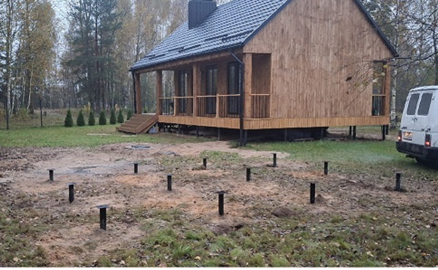 Монтаж винтовых свай под баню из бруса в Могилевском районе