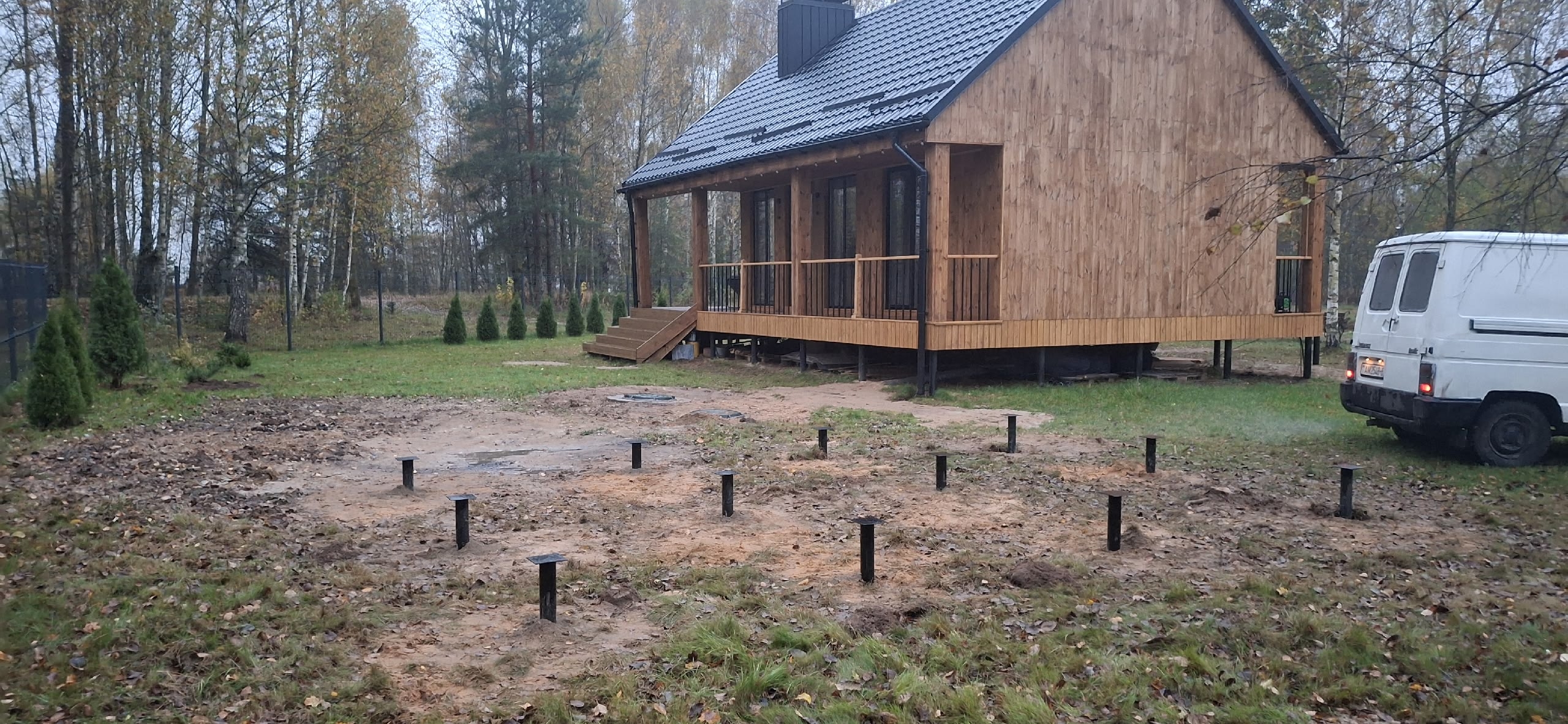 Монтаж винтовых свай под баню из бруса в Могилевском районе