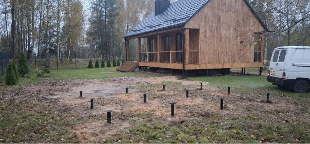 Монтаж винтовых свай под баню из бруса в Могилевском районе
